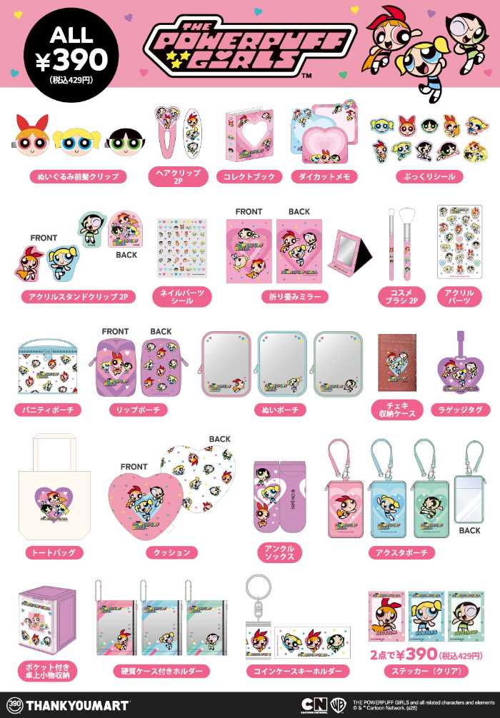 世代を超えて愛される「パワーパフ ガールズ」が、サンキューマートに再び登場します。今回はカラフルでエネルギッシュな世界観を活かした全33アイテムを展開。雑貨からファッション小物まで幅広くそろい、すべて390円(税込429円)で手に入るのも嬉しいポイントです♡推し活や日常使いにもぴったりなラインナップをお見逃しなく。