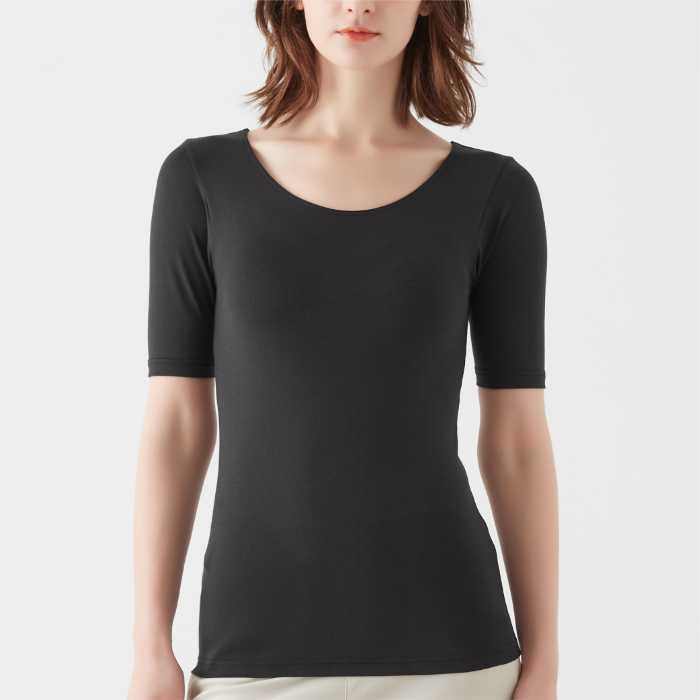 レディスは8分袖(2,200円)、5分袖(1,980円)、タンクトップ(1,760円)の3タイプ。カラーはブラック、クラウドピンク、ベージュの3色展開で、サイズはM・L・LL。