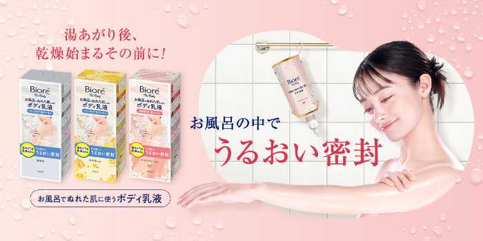 「ビオレ ザ ボディ お風呂でぬれた肌に使うボディ乳液」は、タオルでふいた後も乾燥を防ぎ、しっとりとした肌触りを実現。