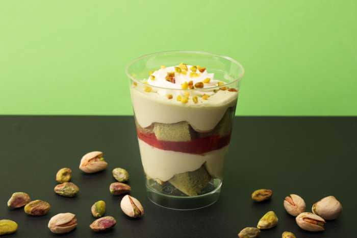 上にはホイップクリームと砕いたピスタチオをトッピングし、濃厚で香ばしい風味とさっぱりとした酸味が絶妙に調和します。