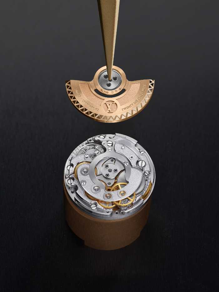今回の「ルイ・ヴィトン モントレ」は、建築家ガエ・アウレンティによるオリジナルデザインを継承しながら、39mmの18Kイエローゴールドケースと自社製自動巻きムーブメントを採用。