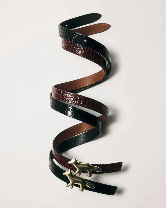 ゴールドのFOXがスタイルにさりげないアクセントを加えます。レザーベルトは29,700円と手に取りやすく、バッグと合わせてコーディネートするとより華やかに。
