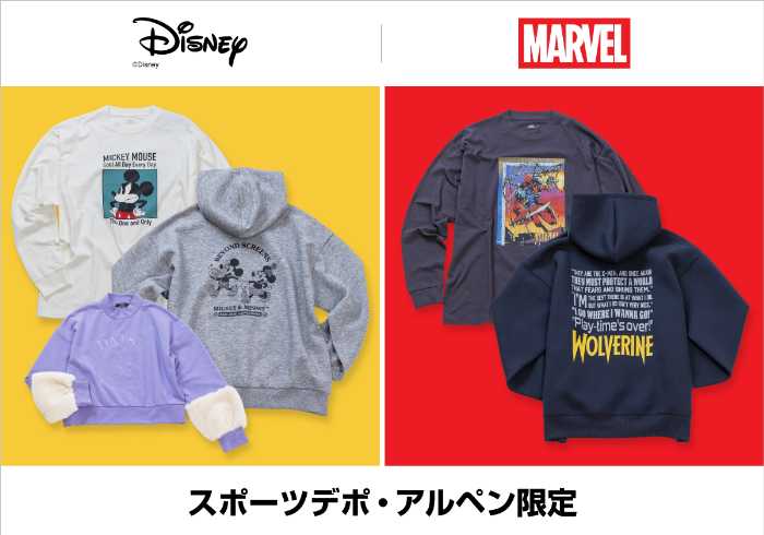 ディズニー&マーベルの限定アイテムは、全国のスポーツデポ・アルペン店舗や公式オンラインストアで販売中。
