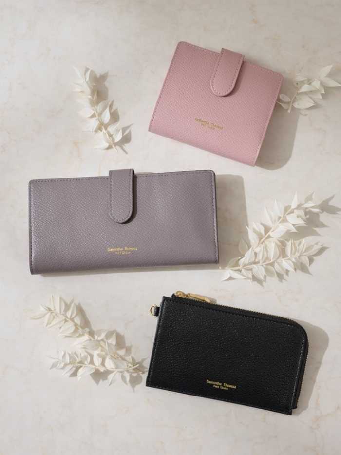 落ち着いたトーンが魅力の「シンプルシリーズ」は、ブラックやピンクベージュなどの上品カラーが揃い、折財布(22,000円)や長財布(24,200円)など、すっきりスリムなフォルムが特徴。