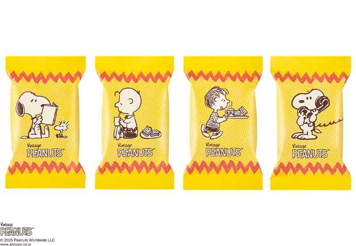 スヌーピー・チャーリーブラウン・サリーが描かれた可愛い詰合せボックスで提供され、個包装にもスヌーピーたちのデザインがランダムで入ります。