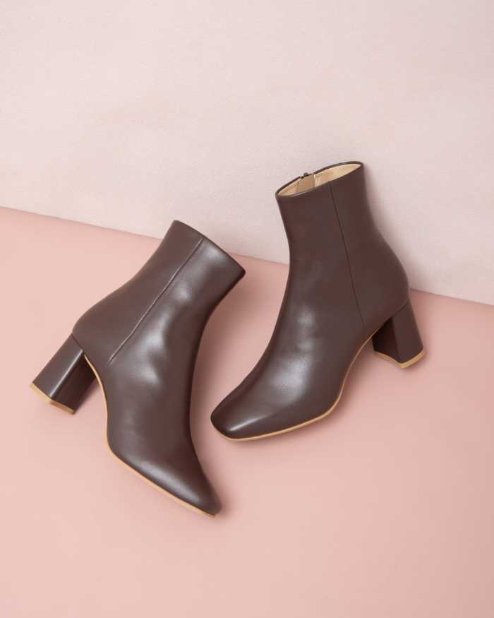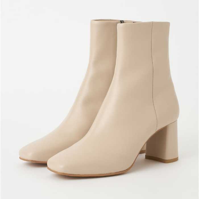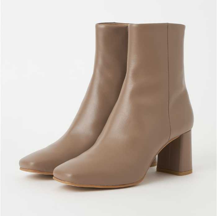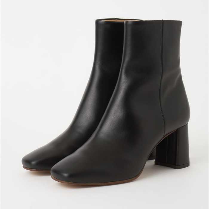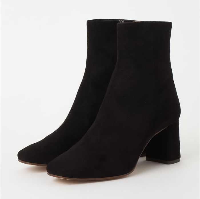 王道美シルエットのショートブーツは、ヒール高6㎝台でスタイルアップも叶えます。サイズは21.5〜25.5cm展開で、足元に上品さと安定感を同時にプラスできます。