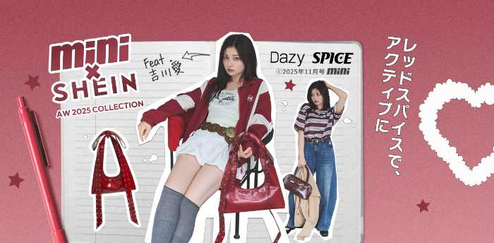 グローバルファッションブランド「SHEIN(シーイン)」が、人気ファッション誌『mini』とのコラボレーションを発表。女優・吉川愛さんが登場し、「Dazy SPICE」「SHEIN ICON」「SHEIN MOD」「FRIFUL」の4トレンドショップの新作を纏った秋冬コーデを披露しました。遊び心と上品さが絶妙に融合したスタイルは、今季のトレンドを先取りできる注目のラインナップ。