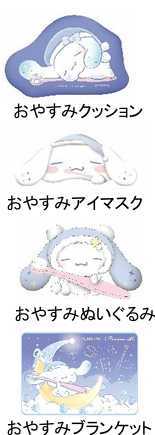 第1弾は「おやすみクッション」「おやすみぬいぐるみ」、第2弾は「おやすみアイマスク」「おやすみブランケット」が抽選で当たります。