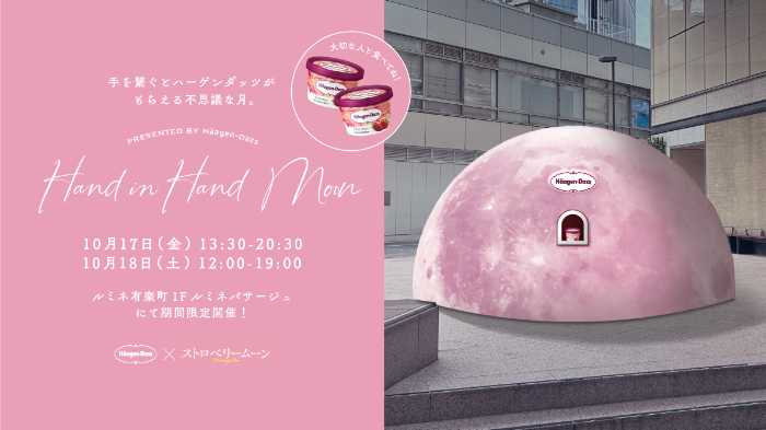ハーゲンダッツが芥川なお氏の小説『ストロベリームーン』とタイアップ♡10月17日(金)・18日(土)の2日間限定で、ルミネ有楽町に特設モニュメントが登場。大切な人と手をつなぐと、月のうさぎからハーゲンダッツ ミニカップ『ストロベリー』が1人につき1個もらえます♪甘酸っぱい苺の味わいと幻想的な体験で、心も距離もぐっと近づく特別な時間を楽しめます。