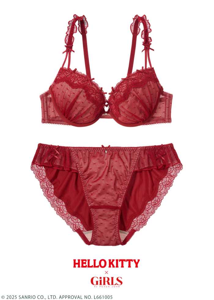 GiRLS by PEACH JOHNから、世界中で愛されるハローキティとのスペシャルなコラボコレクションが登場♡クラシカルなデザインにガーリーな遊び心をプラスした全4型は、ランジェリー3種とルームウェア1種のラインナップ。どれもハローキティの魅力をぎゅっと詰め込んだ限定デザインです。9月24日(水)より公式通販サイトおよび全国の店舗にて発売スタート♪