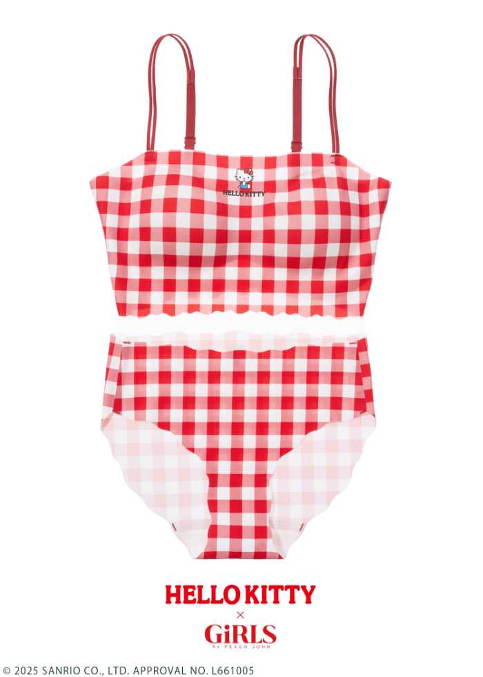 今回のコラボは、ハローキティの愛らしさとGiRLS by PEACH JOHNらしいフェミニンさが融合した特別なコレクション。