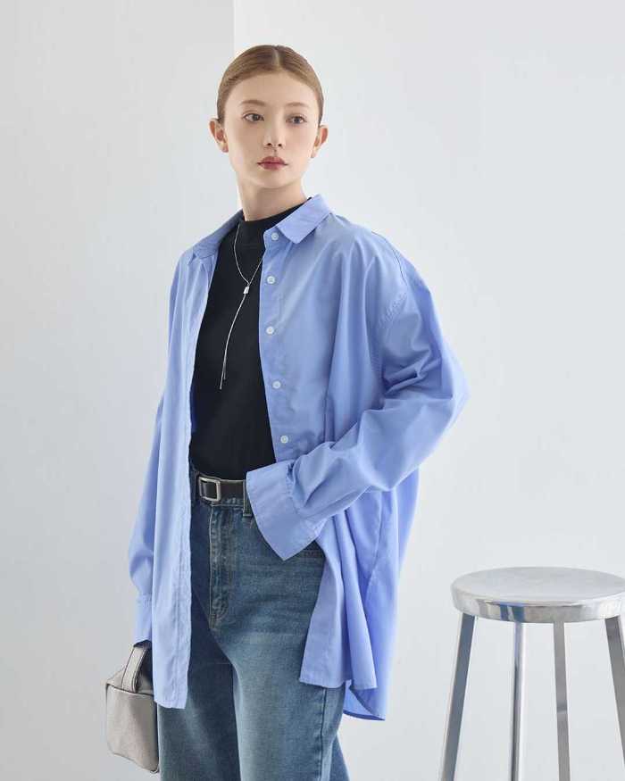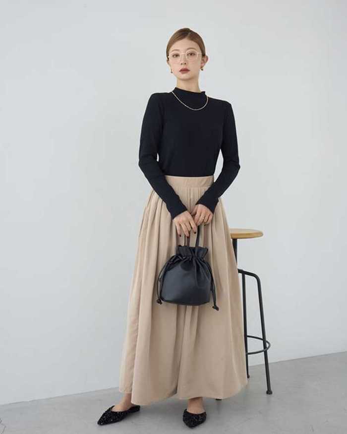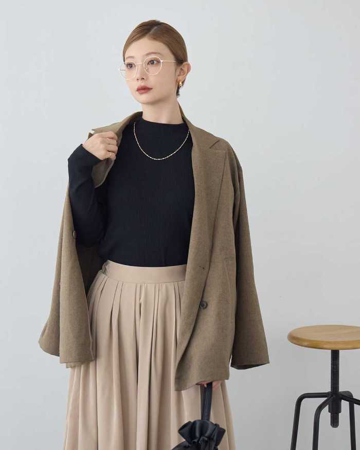 さらに、伸縮性のある細リブ素材で体型を拾いすぎず、すっきりとした印象を与えます。