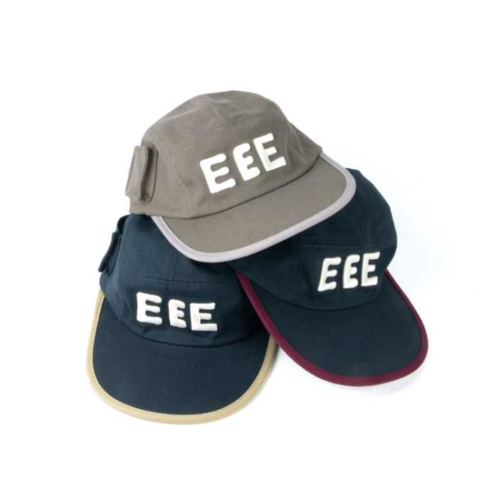 フロントの大胆な“EEE”ロゴが印象的で、右サイドには小物が入る便利なポケット付き。100%コットンの5パネルデザインで、アウトドアシーンにも街中にも映える一品です。