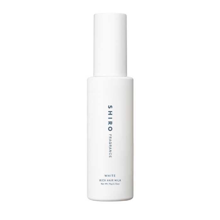 **ホワイト リッチヘアミルク(78g/3,850円)**は、日高昆布1とトマト種子油2配合で、しっとりまとまるツヤ髪へ。