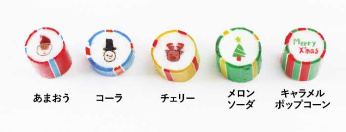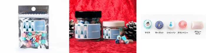 それぞれのキャンディには光にかざすと輝く帽子や星などのパーツが施され、華やかな見た目と味わいで季節感を盛り上げます。