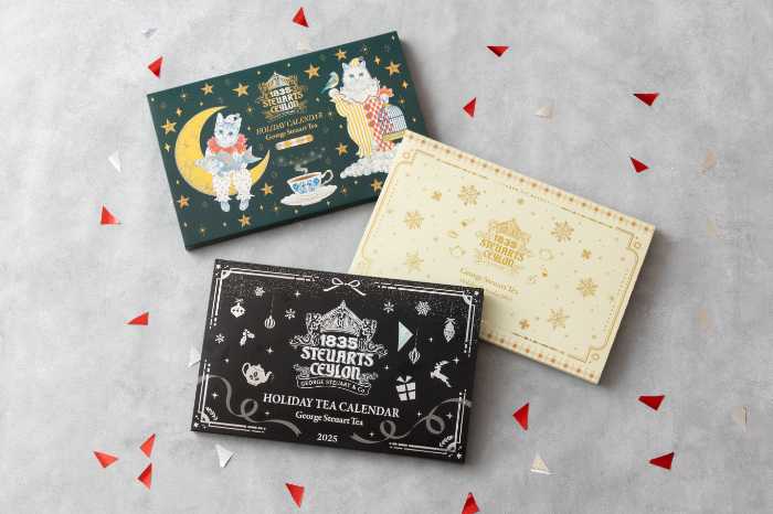 スリランカ最古の紅茶ブランド、ジョージスチュアートティから、2025年のホリデー限定「紅茶のホリデーカレンダー<猫>」が登場♡可愛い猫の描き下ろしアートが施された24日間の体験型カレンダーで、毎日違う紅茶を楽しめます。フレーバーティー14袋、無香料セイロン6袋、ハーブ2袋、チャイ2袋を詰め込んだ2,800円(税込・送料込)のギフトは、自分へのご褒美にもぴったりです♪