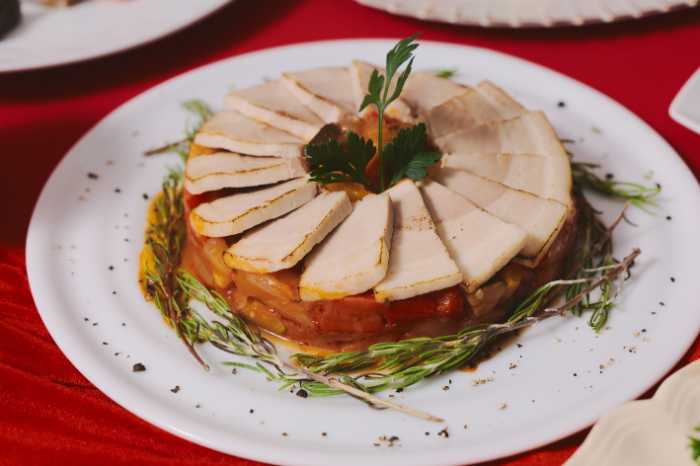 冷製料理では「ポークコンフィとカポナータ」や「ドライフルーツたっぷりのパテ・ド・カンパーニュ」が登場♡