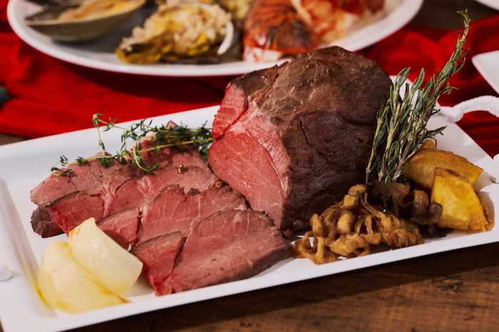 和牛ローストビーフや合鴨ロース オレンジソース、スモークサーモンなど前菜からスイーツまでクリスマス気分を満喫♡大人11,000円、7~12歳5,800円、4~6歳3,100円(税込)です。