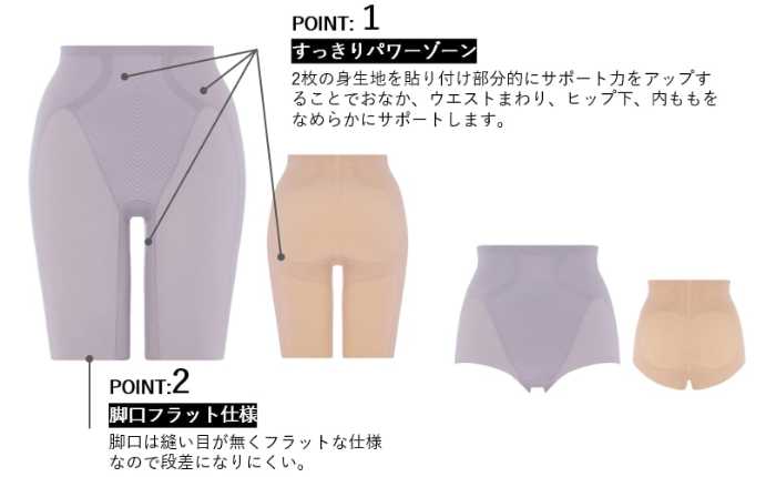 同シリーズからは、まるではいていないような快適さを実現したガードルも新登場。ソフトでなめらかな生地がヒップとお腹をやさしく包み込み、「すっきりパワーゾーン」でしっかりサポートします。