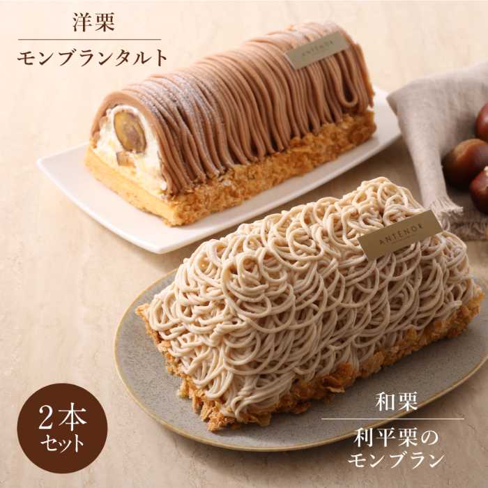 「モンブラン食べ比べセット」(税込7,452円)は、和の「利平栗のモンブラン」と洋の「モンブランタルト」を各1個ずつ詰め合わせた特別なセット。