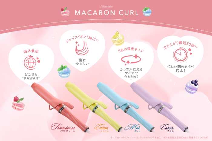 クレイツイオン(R)加工や温度調節機能など、髪想いの工夫が満載です。「マカロンカール」で、毎日のスタイリングをもっと自由に、もっとKAWAIIに楽しんでみてはいかがでしょうか♪