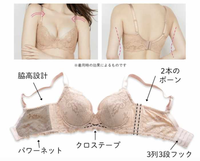 年齢やライフステージによる体形変化に悩む女性の味方として、脇や背中に流れたお肉をしっかりキャッチし、美しいバストラインへ導きます。