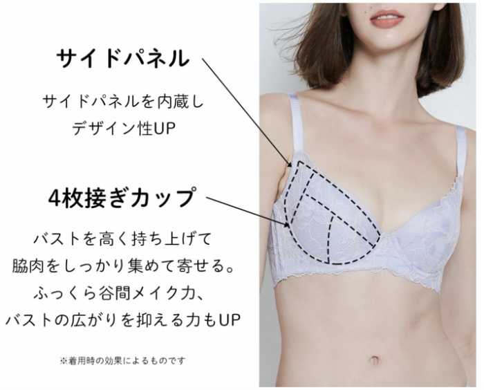 独自の4枚パネル構造のカップと3Dワイヤーが、立体的で自然な丸みを実現。