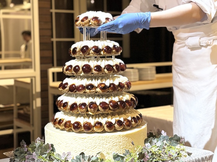 ディナー限定!!迫力満点の「ミルミルサントノーレ」は、お写真動画必見!パティシエさんが、目の前で組み立ててゆく光景はライブ感満載!