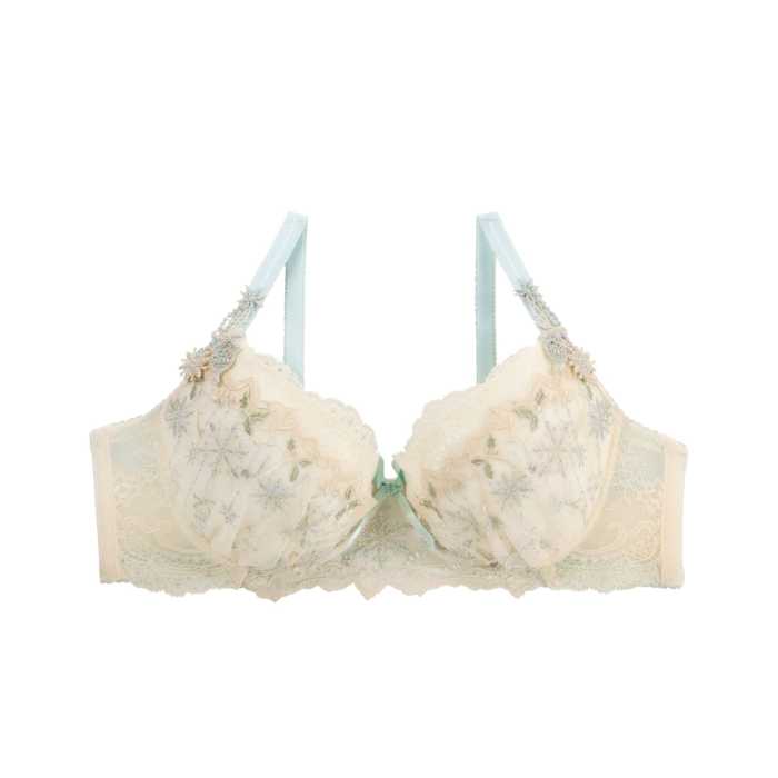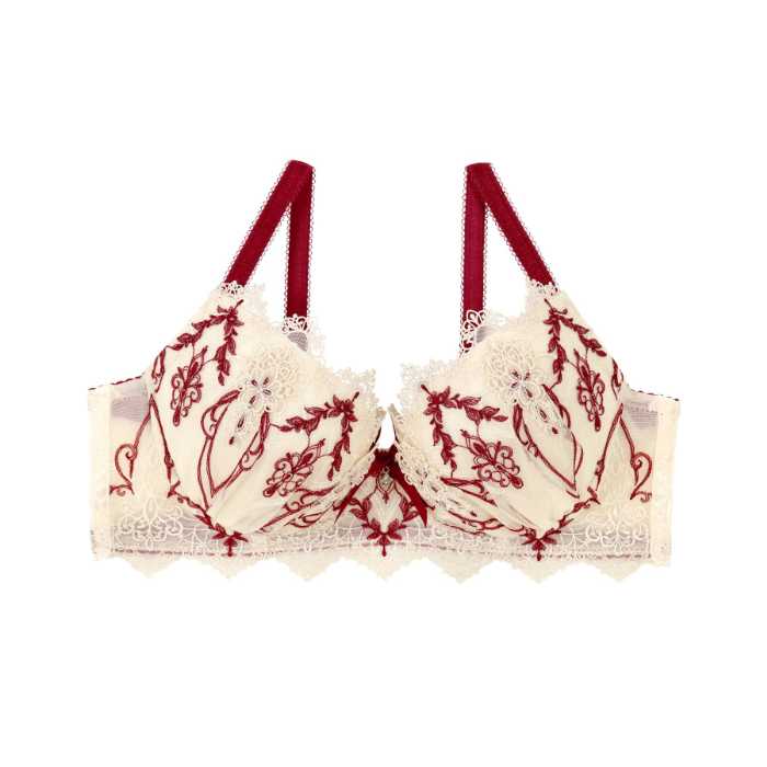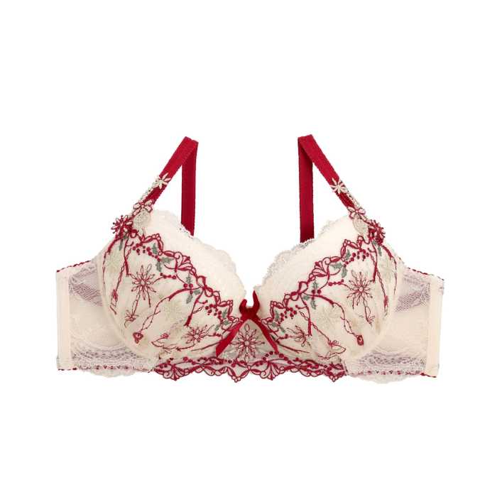 ルビーは“最高の私に出会う魔法ランジェリー”がテーマ。モミの木や雪の結晶をモチーフにしたレースが特徴で、カラーはクリーム・レッド・グリーン。