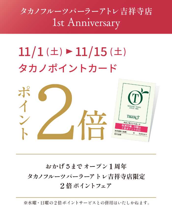 限定メニューとあわせて注目したいのが、「タカノポイントカード2倍ポイントフェア」。