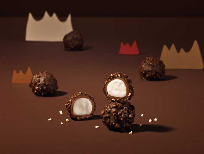「スノーボール ごろり」は、冬の放牧牛乳入り生クリームを生チョコで包み、ザクザク食感のアーモンドチョコレートでコーティングした生トリュフ。