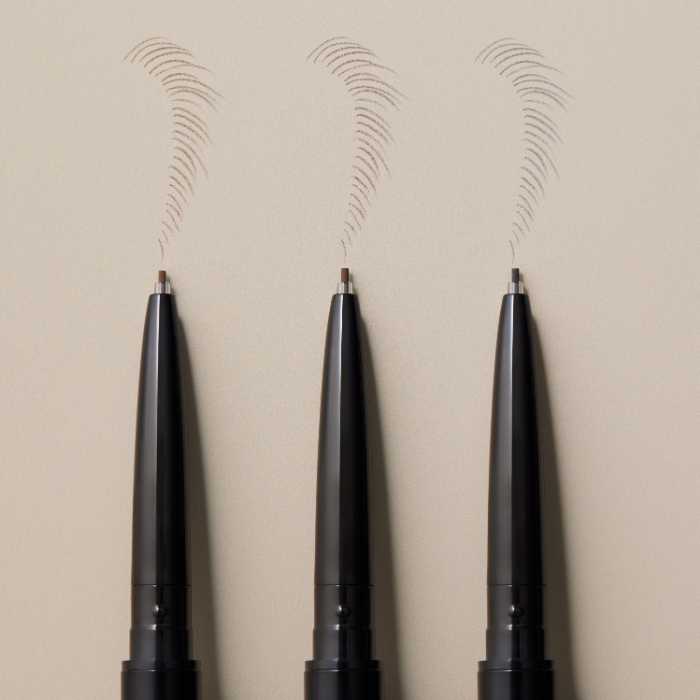 上下に動く保護パイプ付きで芯が折れにくく、ウォータープルーフ処方により、皮脂やこすれにも強い設計です。カラーはほんのりグレイッシュで自眉になじむ全3色展開です♡