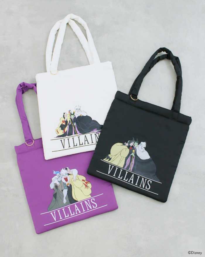 新作コレクションには、ヴィランズデザインの雑貨も充実!総柄プリントにフリルをあしらったポーチ(¥4,290)や、ヴィランズがスタイリッシュに描かれたトートバッグ(¥4,950)も登場。