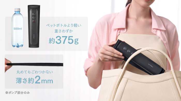 折りたたむと小さなバッグにも入るコンパクト設計で、旅行やオフィスでも活躍。1回の充電で最長3時間使用できるコードレス仕様も嬉しいポイントです♡