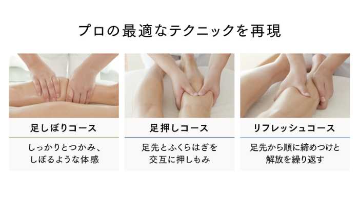 足先フィットポンプが指圧のような爽快感を生み、3段階温熱モードと組み合わせることで、深いリラクゼーションを体感できます。
