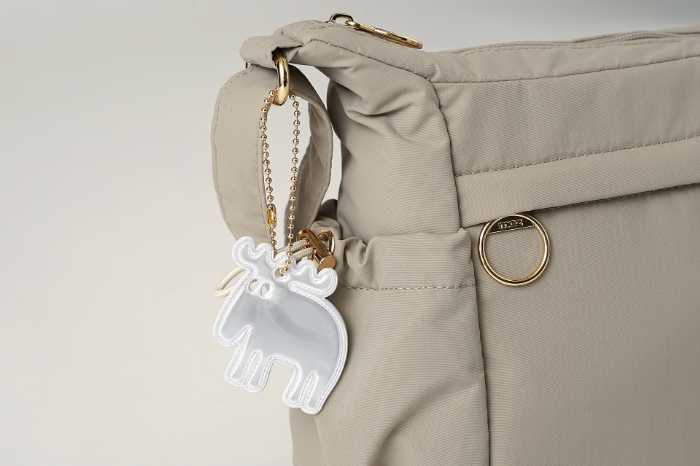 さらに、夜間の安全をサポートするリフレクトチャーム付きで、デザイン性と安心感の両立が叶いました。ショルダーストラップにも本体と同じボンディング素材を採用し、肩に優しくフィットします。