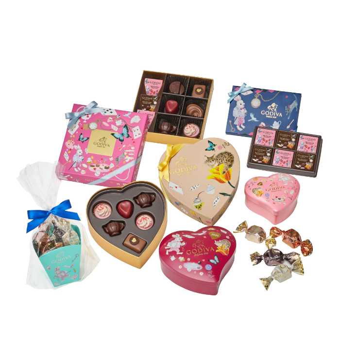 ゴディバの「アリスのティーパーティ コレクション」は、ハートやティーポット、チェシャ猫などのかわいいパッケージに、ストロベリーやナッツ、紅茶風味の限定チョコを詰め合わせ♡