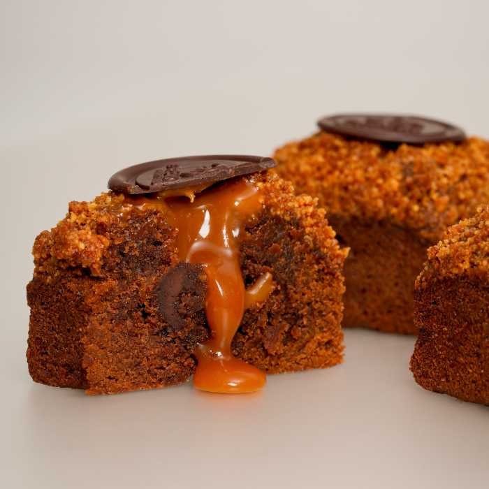 数日経つと、キャラメルが生地に染み込んでしっとりとした食感に変化するので、ひとつで二度楽しめる贅沢なブラウニーです♡