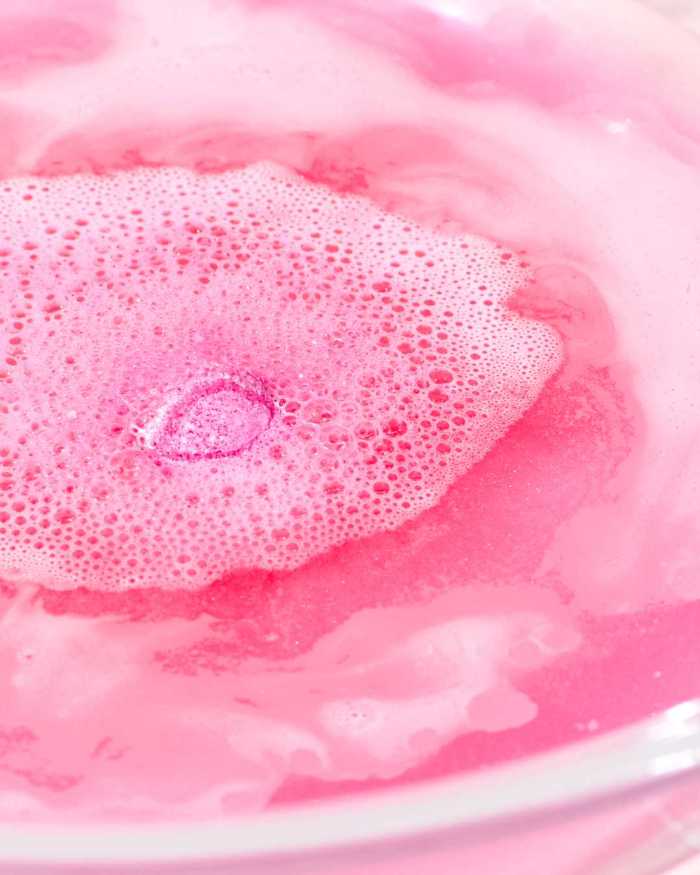 『エンジェルの煌めくバスボール♡』は、5個入りで税込698円。お湯に入れるとやさしいエンジェルピンク色に変わり、しゅわっと泡とラメが舞います。