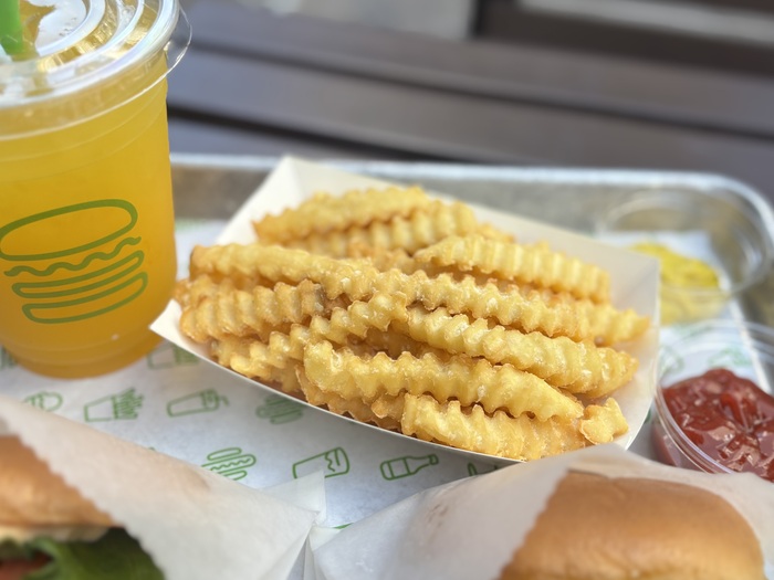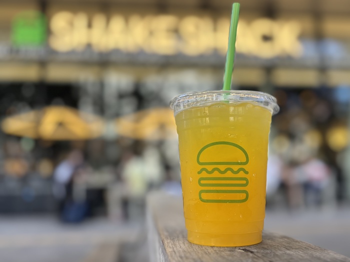 お店で丁寧に仕込んでいる、シェイク シャックのオリジナルレモネードに、マンゴーピューレをミックスしたドリンク「マンゴーレモネード」。