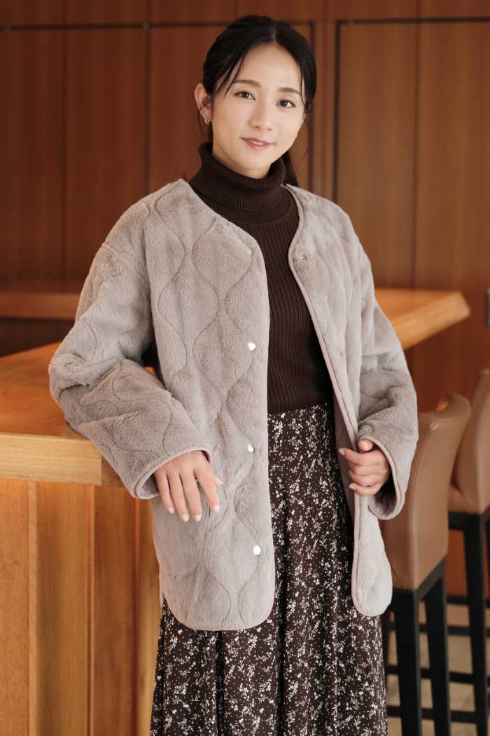一枚で印象を変えられるリバーシブル仕様のブルゾンは、まさに“万能アウター”。軽やかなファー面は休日のカフェやデートにもぴったり。プレーン面は通勤やお出かけなど、落ち着いた場面でも活躍します。