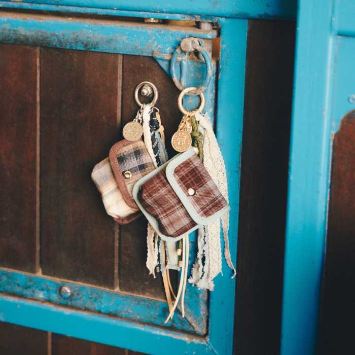 スウェットコンビニット(8,000円税込)やアソートニット帽(4,000円税込)、2Pソックス(1,980円税込)、ポーチチャーム(2,990円税込)も展開。