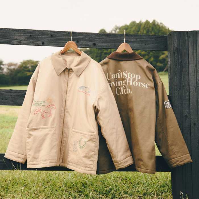 アソート中綿ジャケット(13,000円税込)は、人気の「Can’t Stop Horse Club」ロゴ入り。ベージュ・カーキのフリーサイズで、秋冬コーデにぴったりです♡