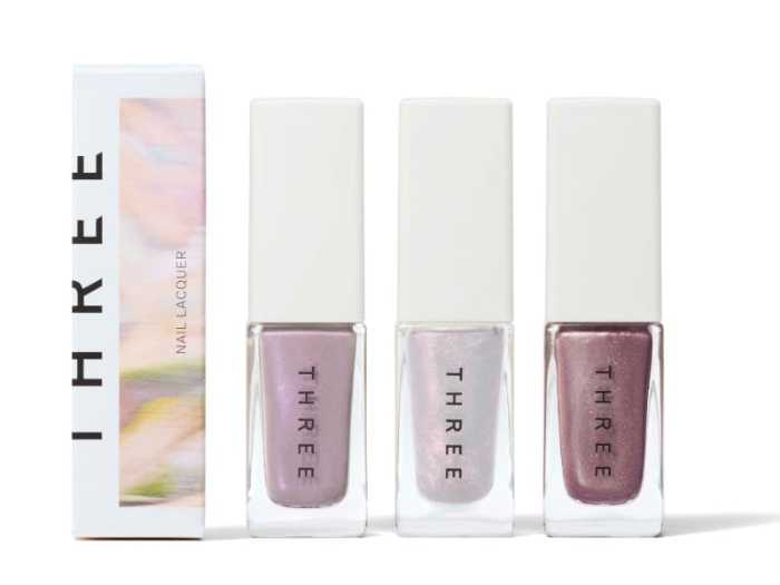 THREE ネイルラッカー(限定3色 各2,420円税込)は偏光パールで1度塗りでもシックな輝き、重ね塗りでラディアンスな指先に仕上がります♡