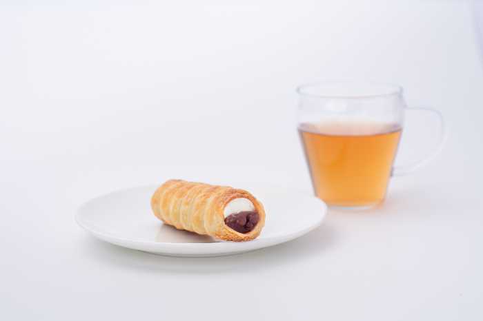 定番人気の「あずきコルネ 和三盆クリーム」も、あずき茶付きセット・単品ともに販売。どちらも北海道産小豆の風味と上品な甘さが魅力です。