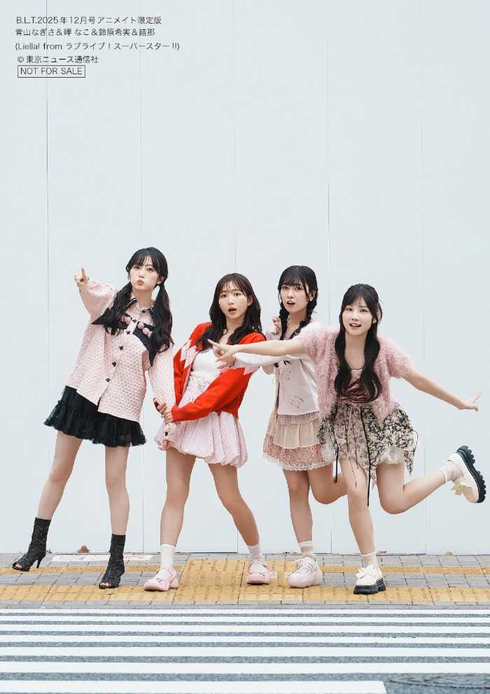 Liella!の岬なこさん、青山なぎささん、鈴原希実さん、結那さんの4名が表紙を飾る「B.L.T.2025年12月号 アニメイト限定版」。テーマは“やさしく強く、美しく。”。