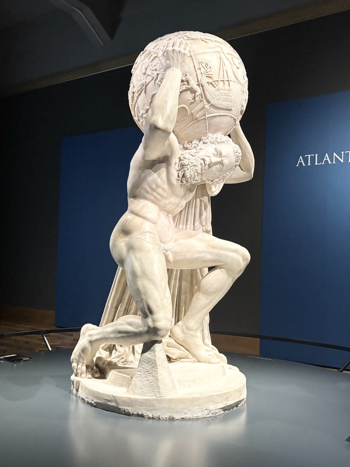 会場へ足を踏み入れると、現れる「ファルネーゼのアトラス」大理石でできており、高さ193cm、直径102cm、古代彫刻の最高傑作と称されています。