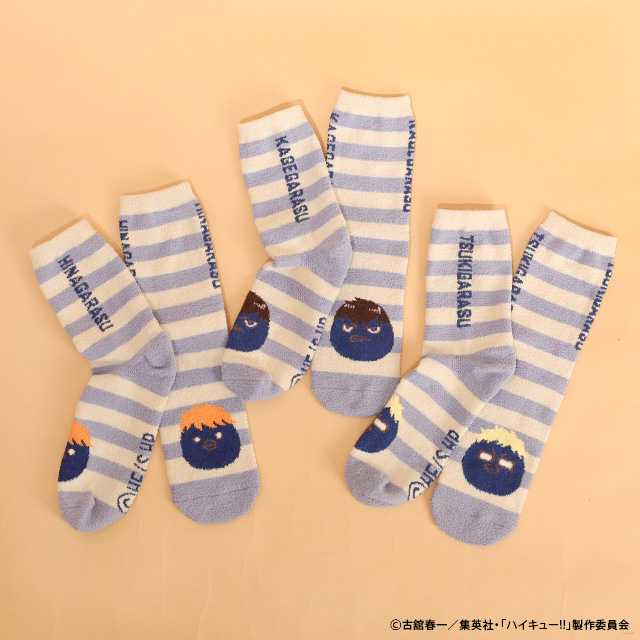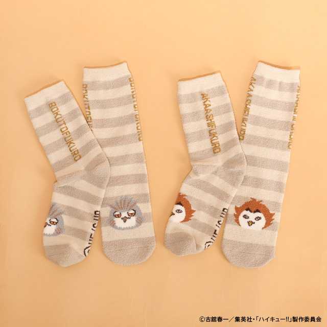 同シリーズの「ハイキュー!!もこもこルームソックス」(全7種)は、アニマルマスコットが可愛く足元を包み込むマシュマロタッチ素材を採用。