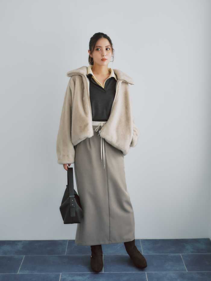 異なる質感を重ねることで、シックでありながらも遊び心ある大人のスタイリングが完成します♪