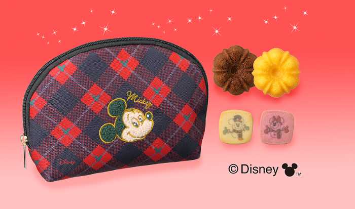 銀座コージーコーナーでは、もこもこのさがら刺繍で描かれたミッキーのポーチ(8個入 1,870円税込)やツリー形BOXに入った焼菓子(7個入 669円税込)。
